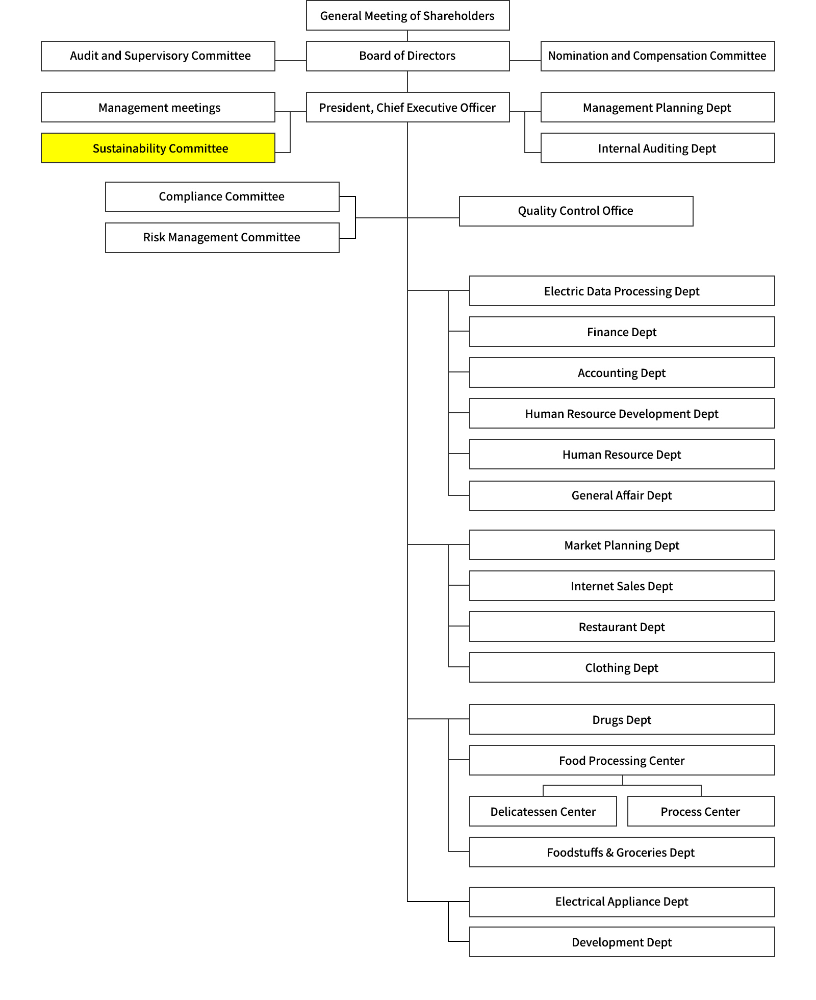 In April 2022, we established a Sustainability Committee , chaired by the President, Chief Executive Officer and composed of management meeting members (executive directors, full-time Audit and Supervisory Committee members, general managers of each department, and Presidents of subsidiaries). This committee plans and implements action items, evaluates the previous fiscal year’s action plan, regularly reports and makes recommendations to the Board of Directors with respect to its deliberations, and reports to the Risk Management Committee as necessary.