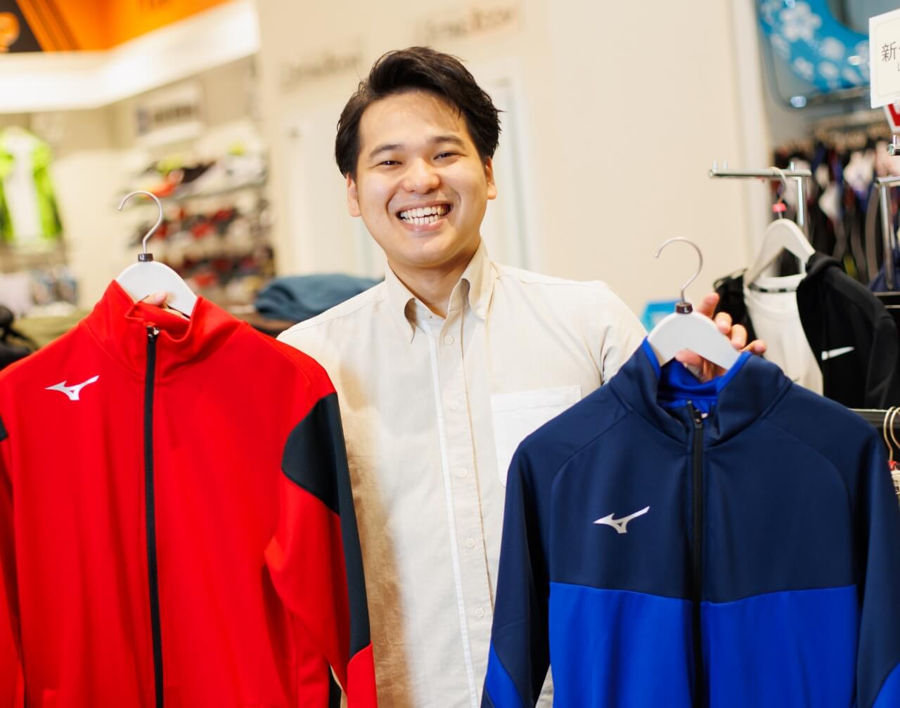 私は現在、紳士服のスポーツとワーキングウェアの仕入れを担当する「バイヤー」として、お客様や売り場の声に耳を傾けながら、日々の業務に取り組んでいます。私たちの仕事は、単に商品を仕入れるだけではありません。お客様が本当に求めているものは何か、売り場に足りないものは何かを常に考え、取引先から提案された商品の中から最適なものを選び抜きます。また、お客様にさらに喜んでいただくために、素材やデザインからオリジナル商品を企画・開発も行います。「こんな商品があったらいいな」という想いを形にし、お客様の手に届ける。その過程には、大きなワクワクとやりがいがあります。そして何より嬉しいのは、自分が仕入れた商品がお客様に喜んでいただけた時です。売り場のスタッフと試行錯誤しながら商品の配置やディスプレイを変更し、それが売上アップにつながった時は、チームで成し遂げた大きな達成感を感じます。