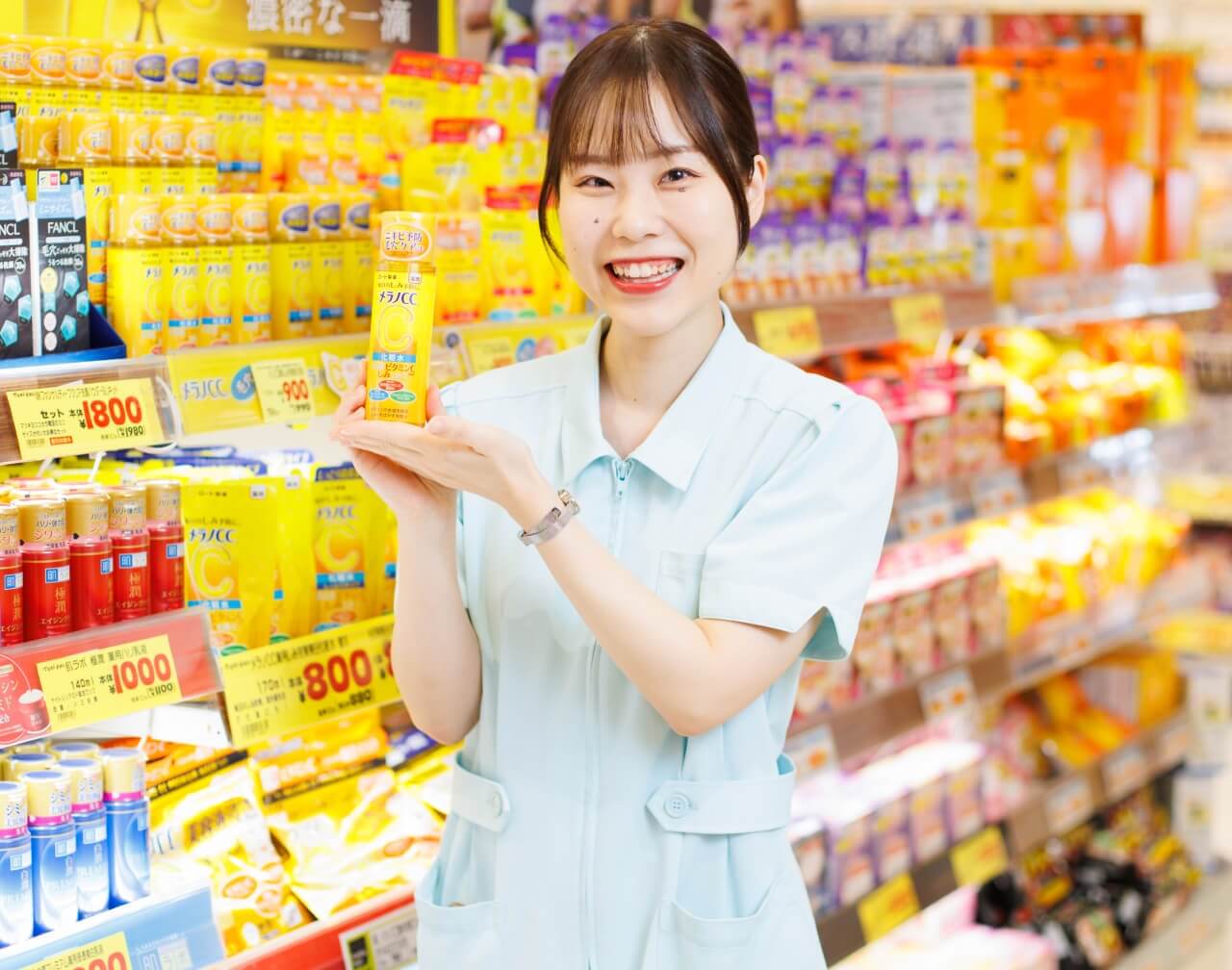 私はドラッグ部の店長として、人・物・金の管理から人材育成まで、多岐にわたる業務に携わっています。