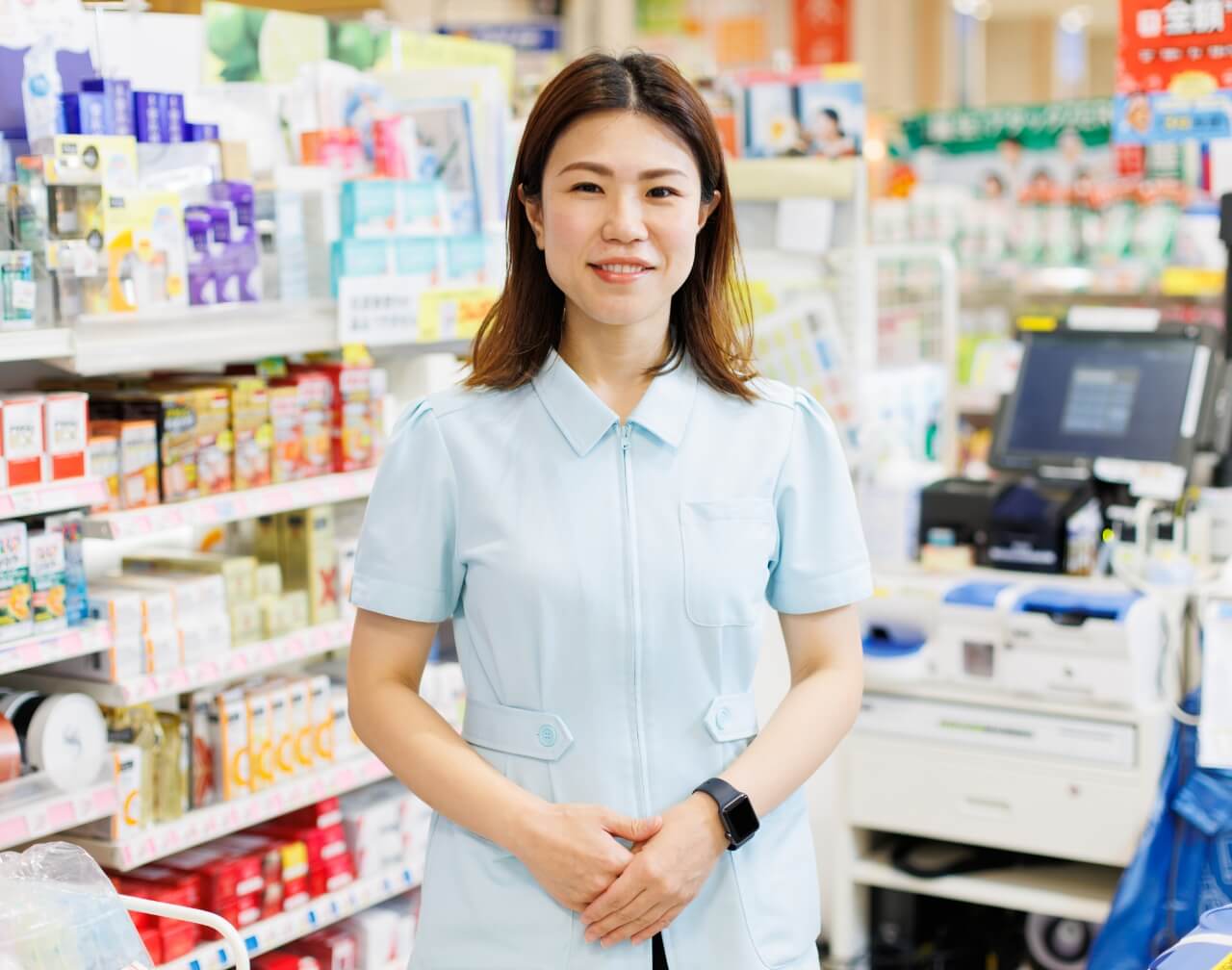 私はドラッグ部のトレーナーとして、店舗運営のサポートを行っています。